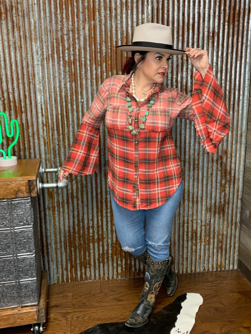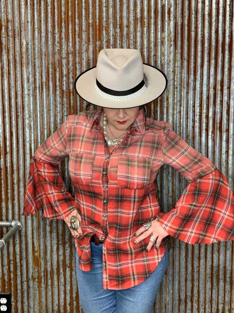 So much detail and can be worn buttoned up or open you decide!!! Β The bell sleeves just make it that much more extra!!