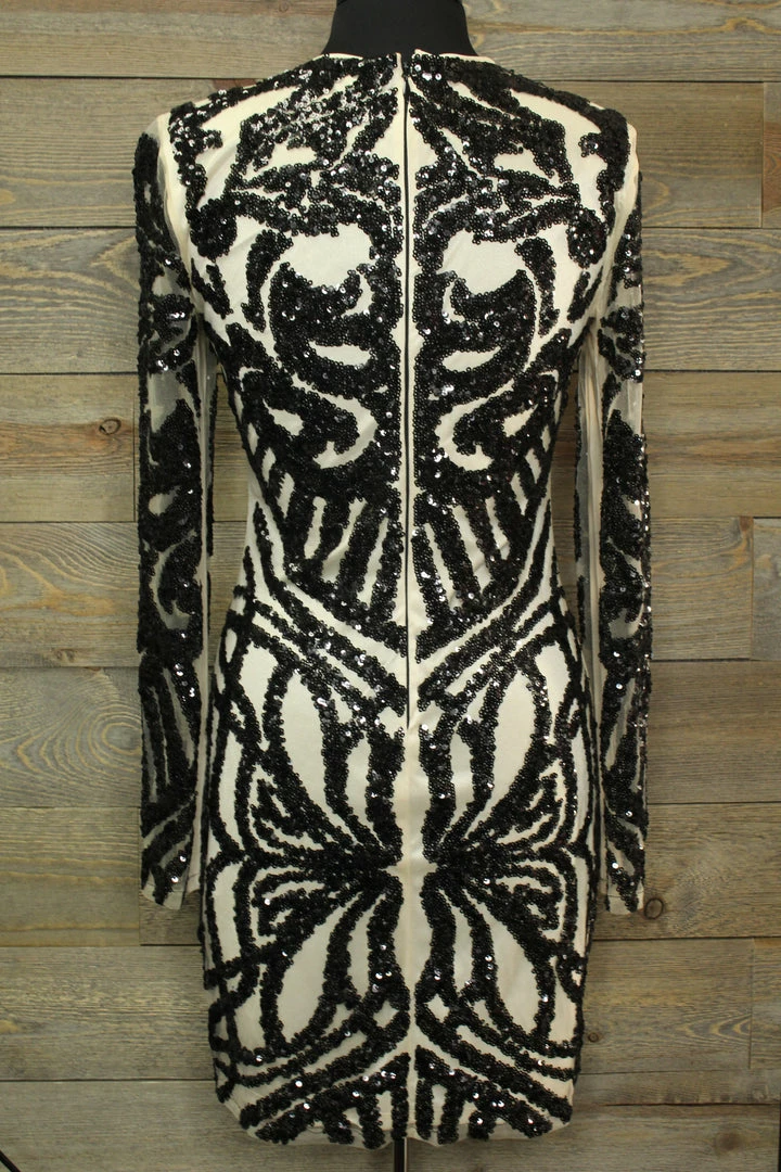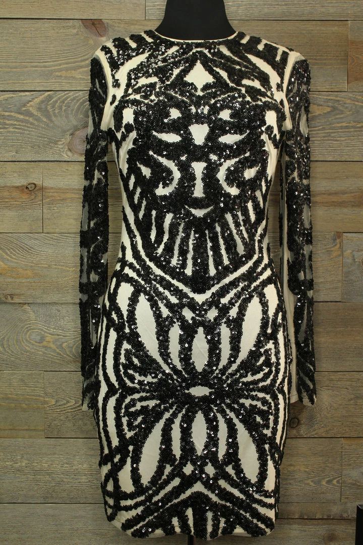 Outlet π Bebe TIFFIANY’S CLOSET Ivory Colored π Dress With Black Sequin Design β€οΈ