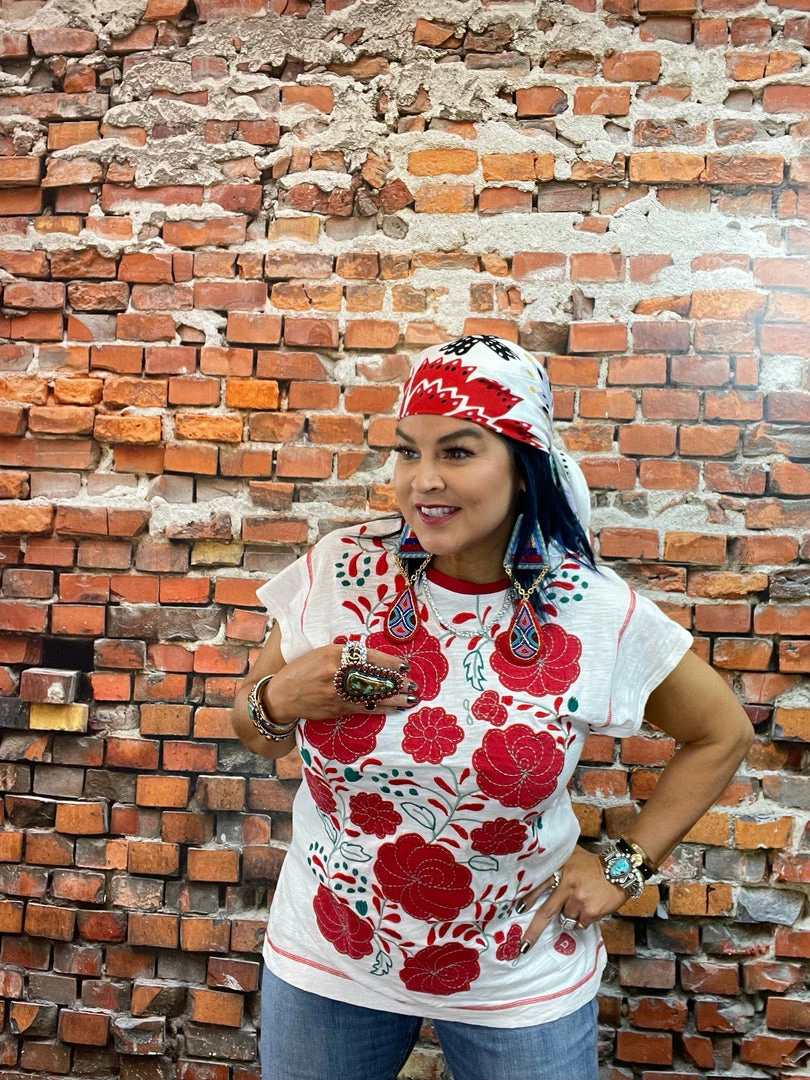 ย This cute, colorful cotton top is anything but average. Itโs got a slightly longer silhouette (perfect for pairing with leggings and skinnies) with a crew neck and chic cap sleeves. But what is really turning heads and stealing hearts are the vibrant hues and oversized folk art florals in strong combinations of colors. Youโre going to want all three!