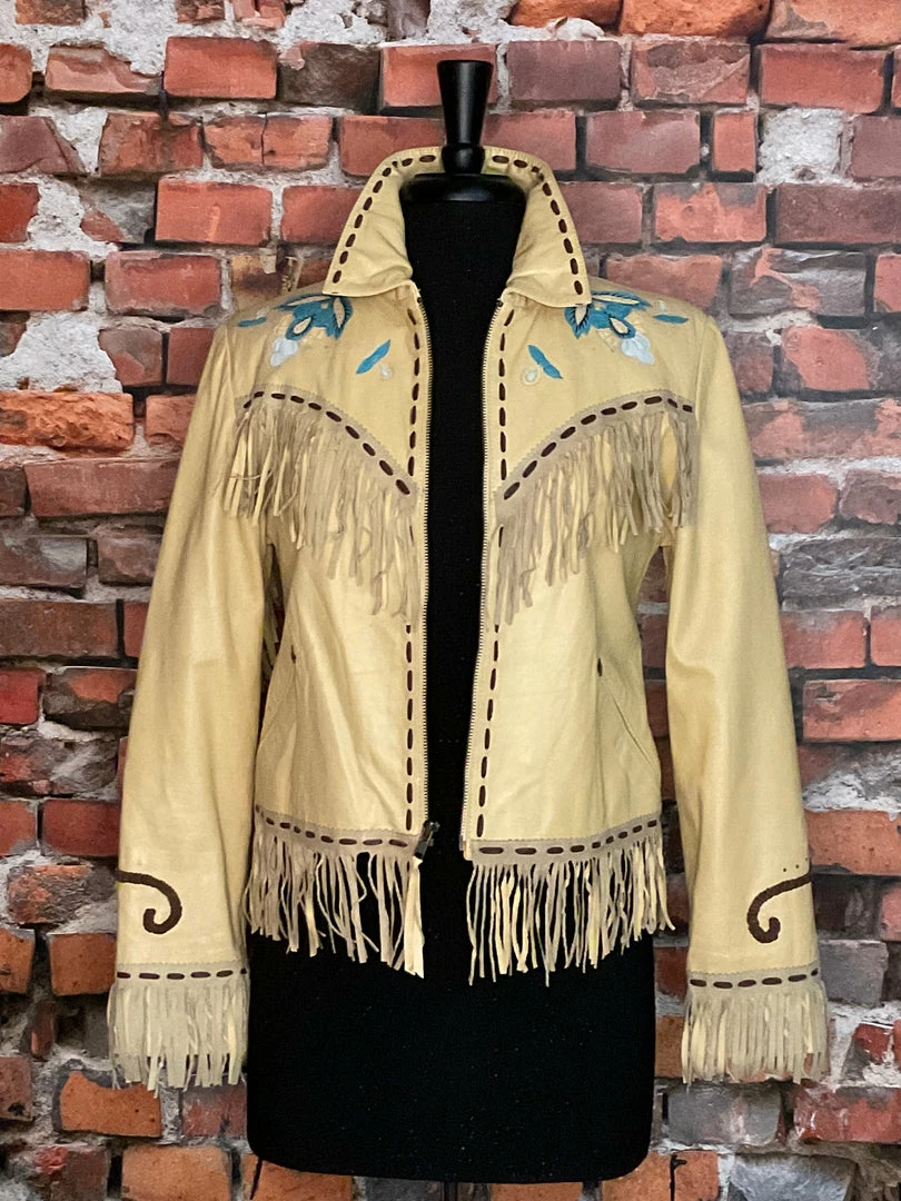 - Sleeve length:ย 24″ (to bottom of fringe)