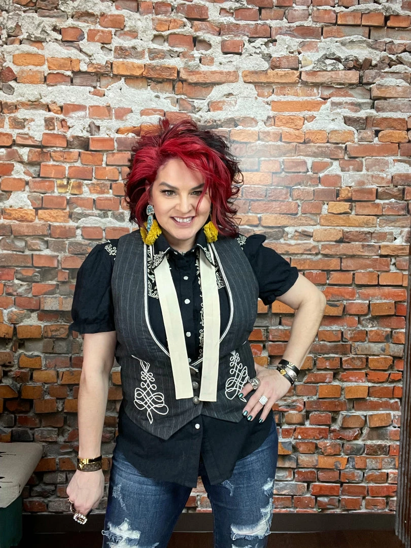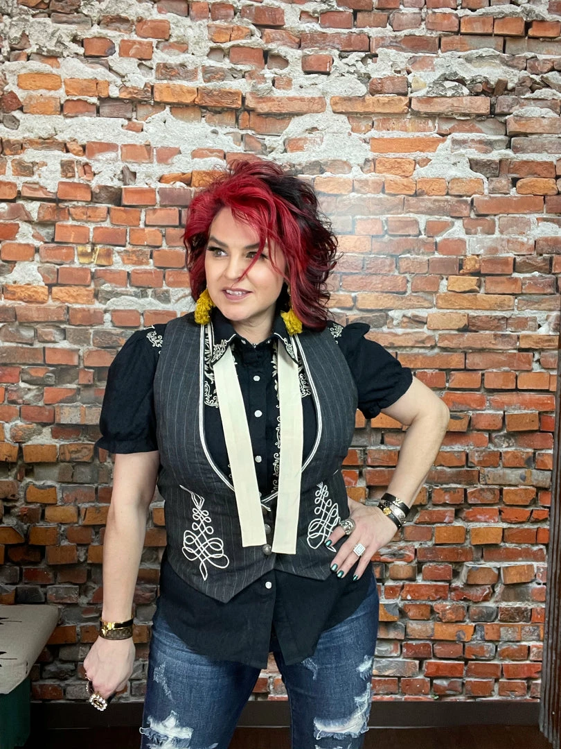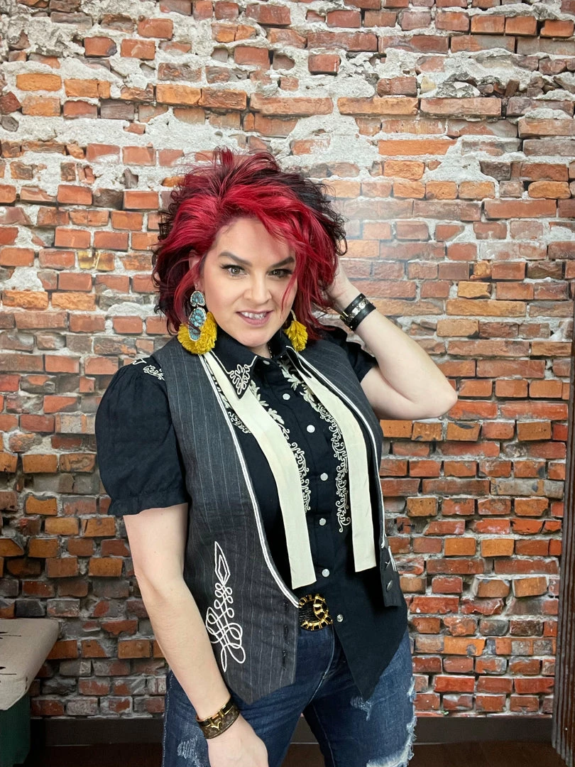 Absolutely love the Maria Collection Bank Teller Vest! The design is unique and the quality is top-notch. Perfect for adding a western flair to any outfit.