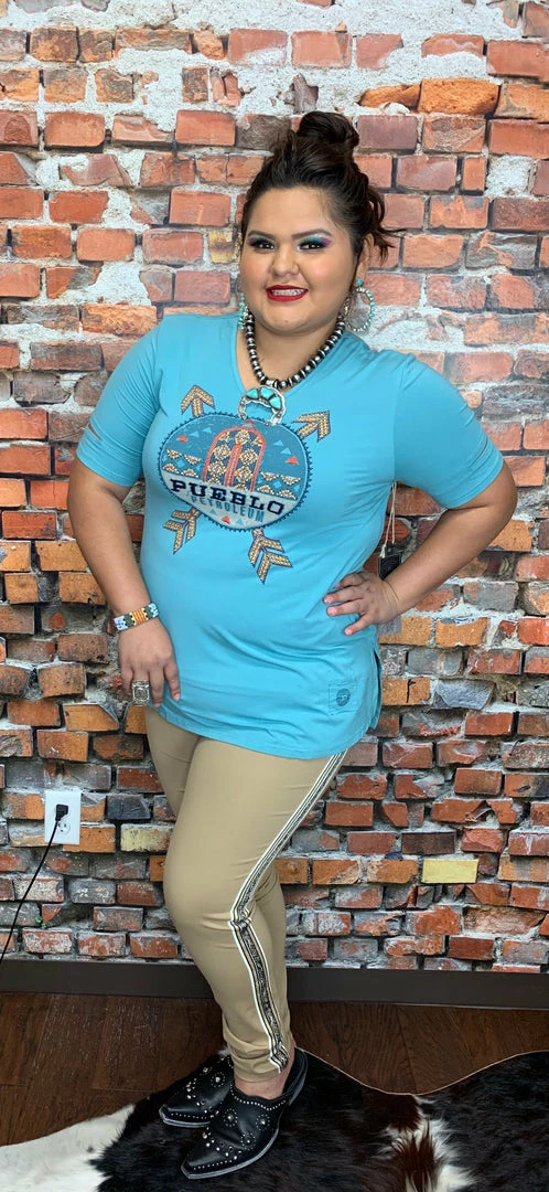 This statement stitching of Pueblo Petroleum really pops against the solid background!!! Β Love the fabric of this topπ