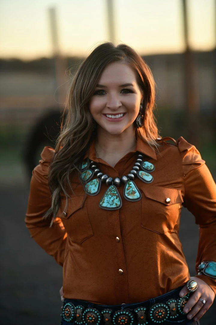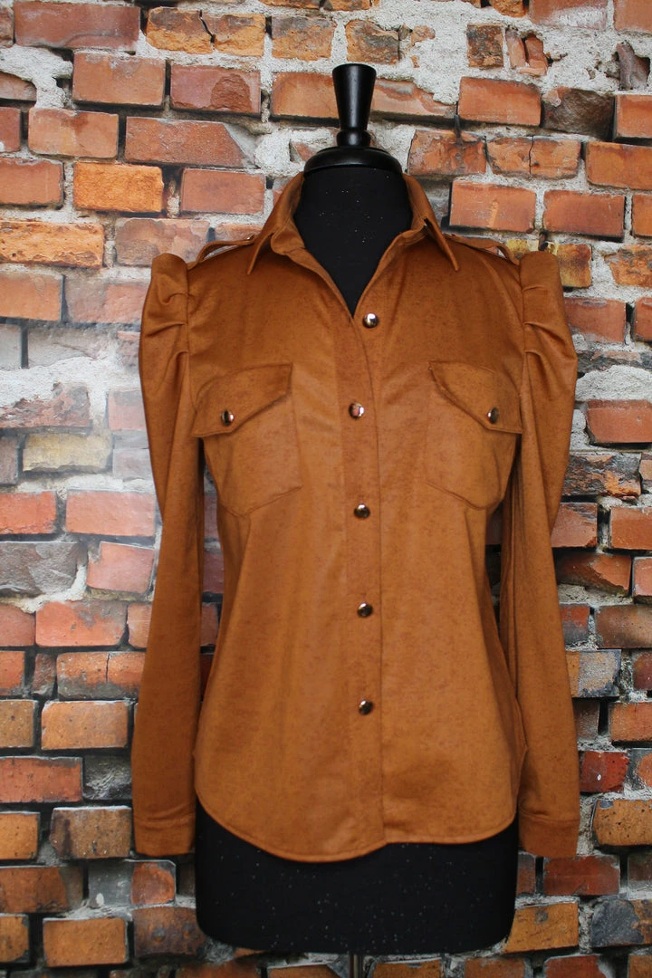 - Fitted, button front closure with puff shoulders and a liquid sheen that will rock your style!