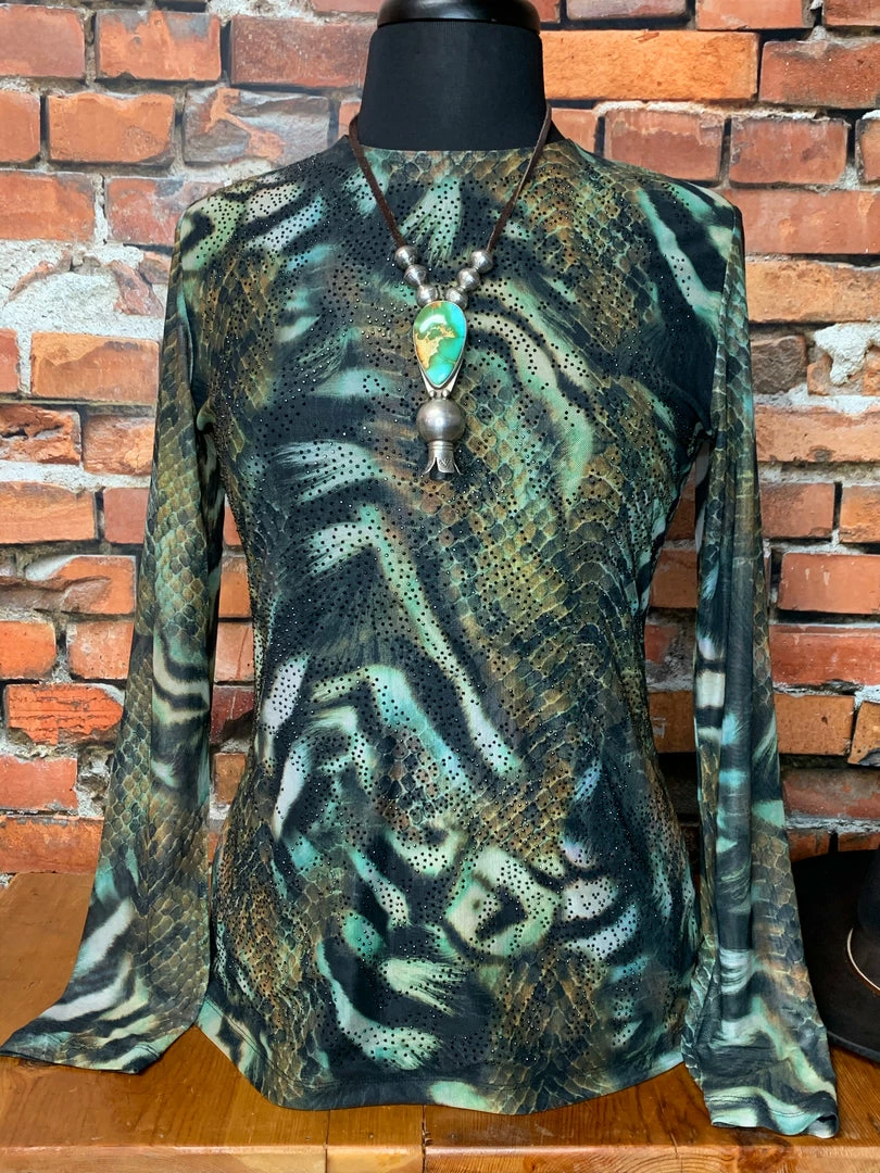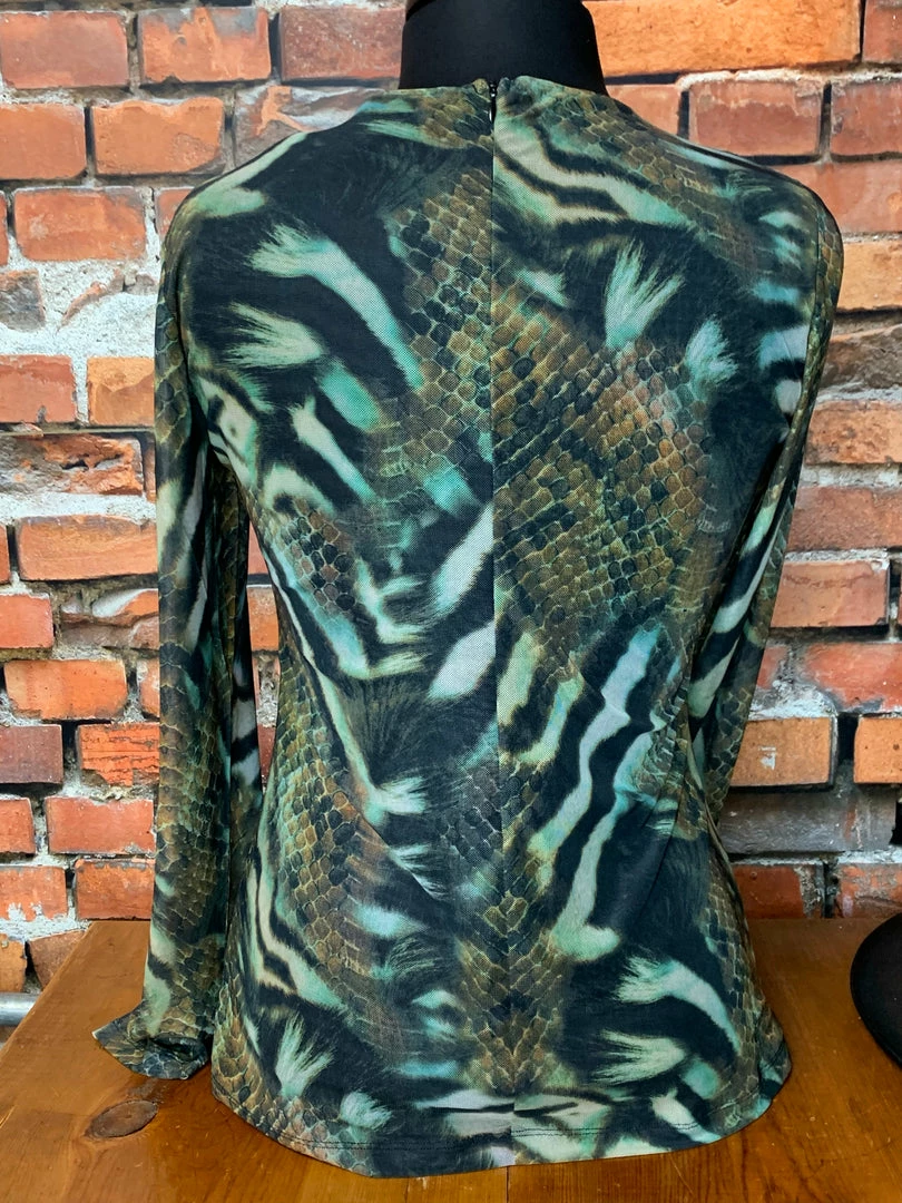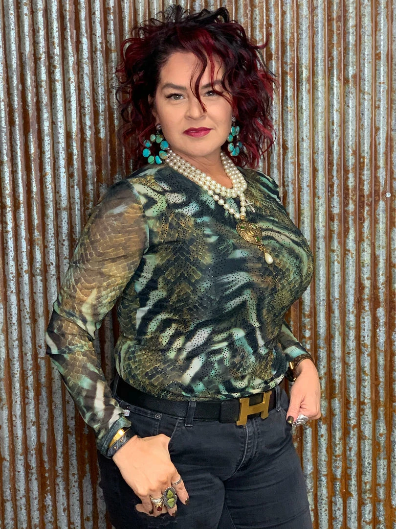 Let your wild side show in this cool, mesh, animal print top. ย Great for casual or a night out.