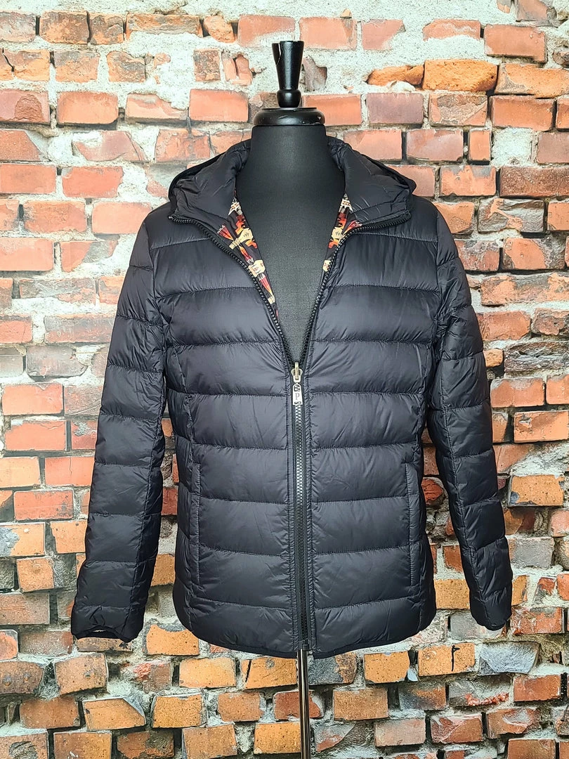 - 100% nylon solid shell, 100% polyester printed shell, 90% duck down, 10% duck feather fill, exclusive of trims.