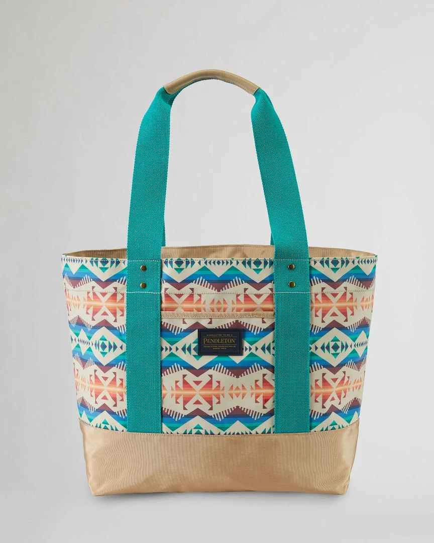 A coated canvas tote durably constructed to withstand the rigors of traveling or daily commuting. Matte PVC coating resists dirt, stains and water, while a wipe-clean lining protects the interior. Zip closure and multiple interior/exterior pockets. Double handles. Pattern placement may vary.