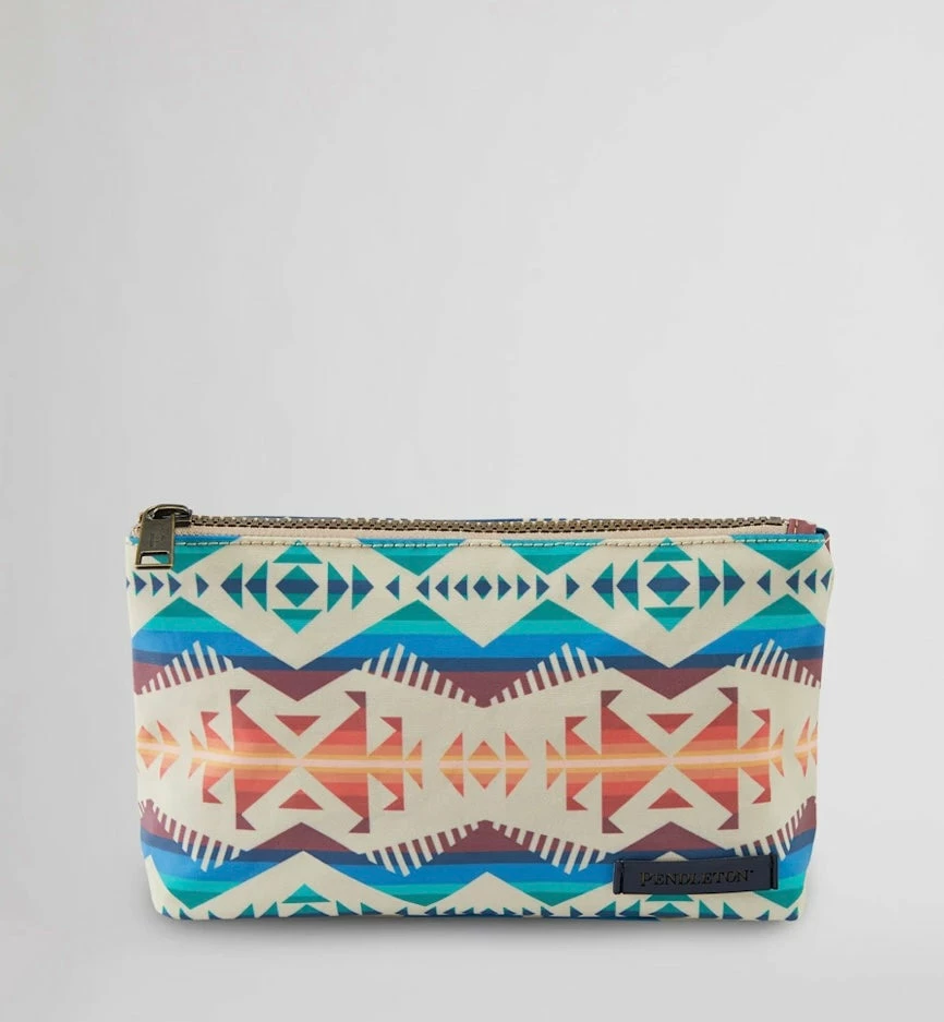 This versatile lightweight pouch is constructed from cotton canvas with a matte PVC coating that resists water, dirt and stains. Zip closure. Wipe-clean interior. Pattern placement may vary.