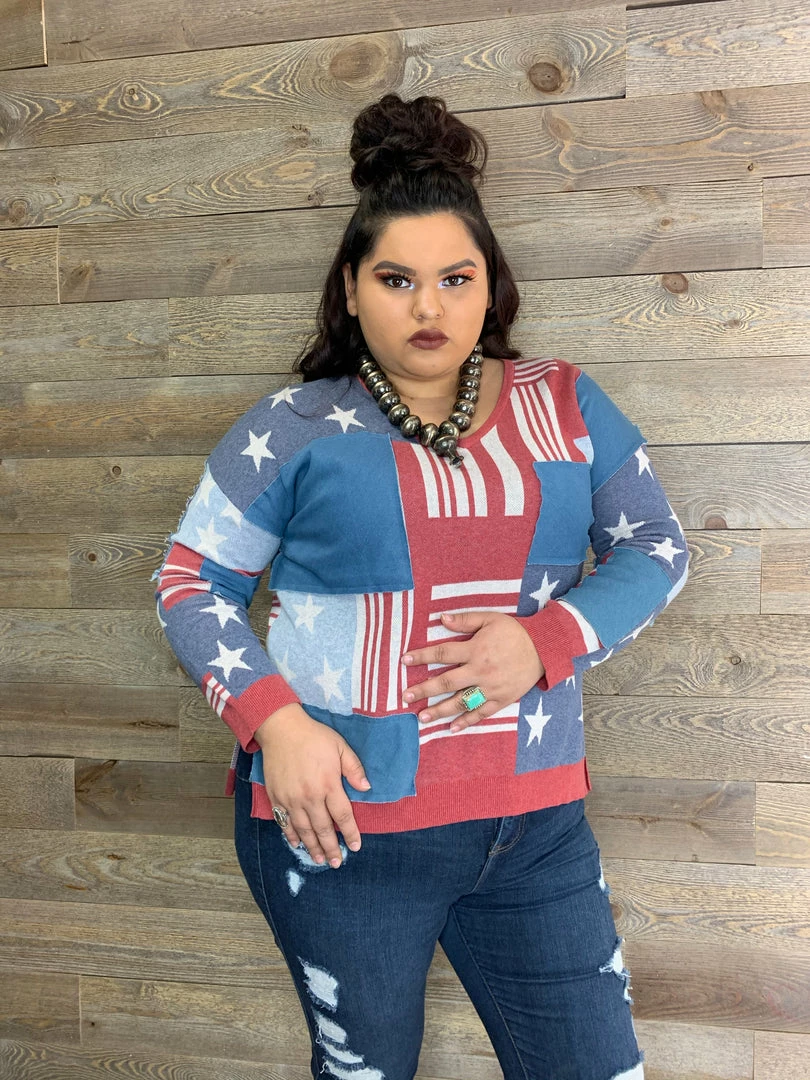 Beautiful patriotic sweater to wear with your favorite denim or white denim jeans or shorts!!!