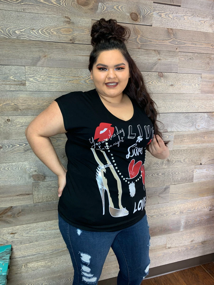 Day or night this super comfy tee is bound to become a favorite of yours to live & love in!