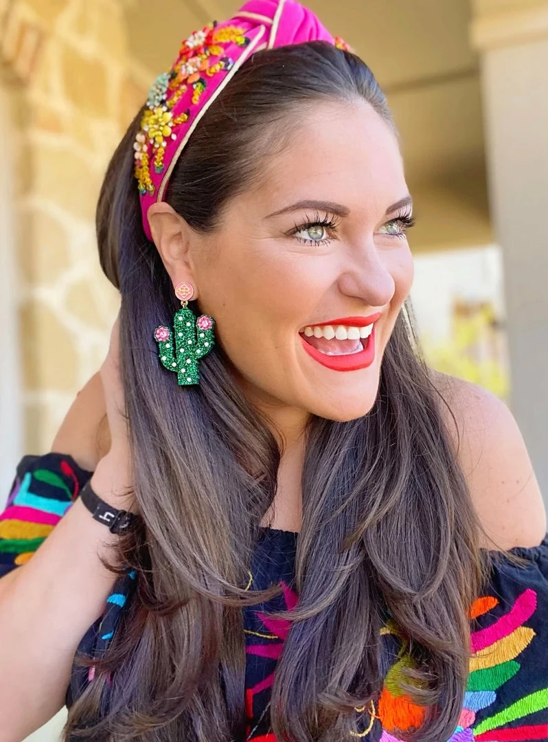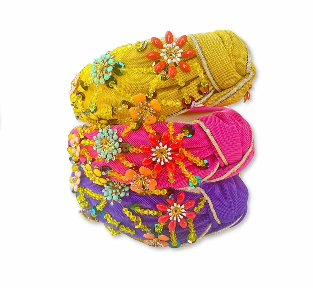 - Knotted headband with multicolor flowers, jewels, and crystalsΒ