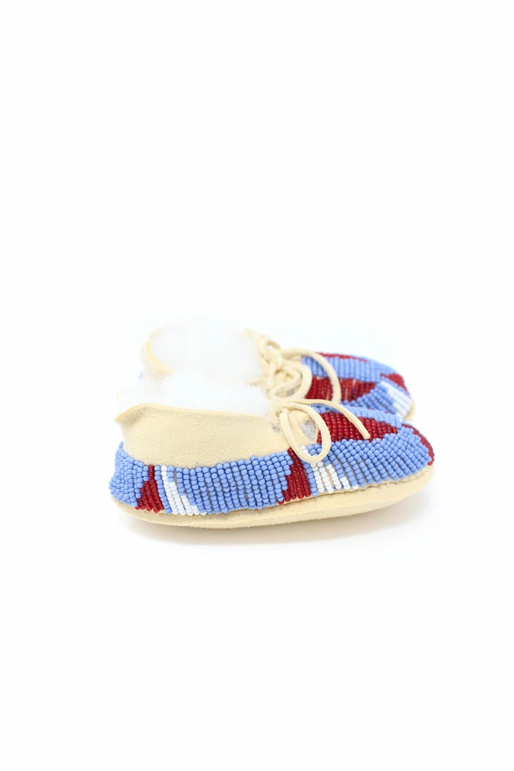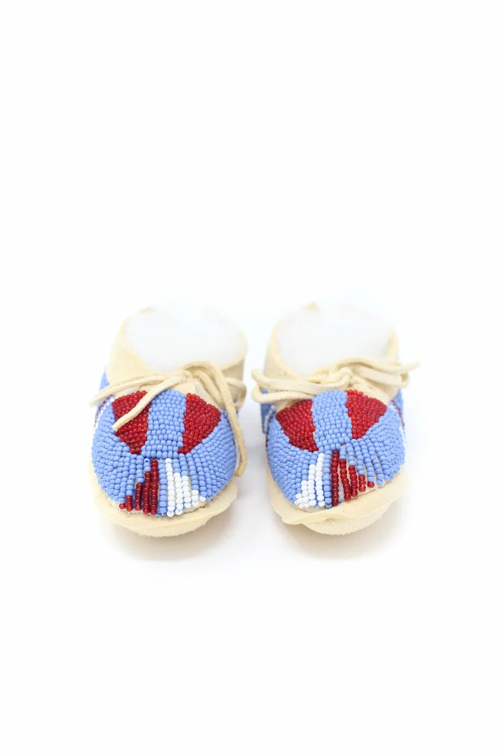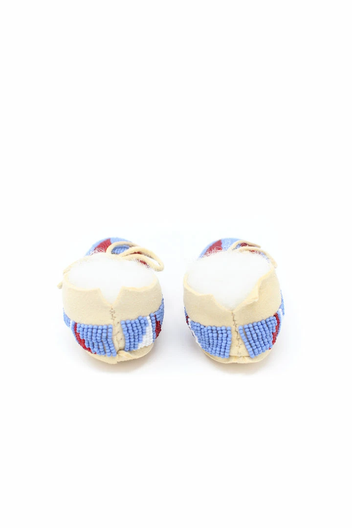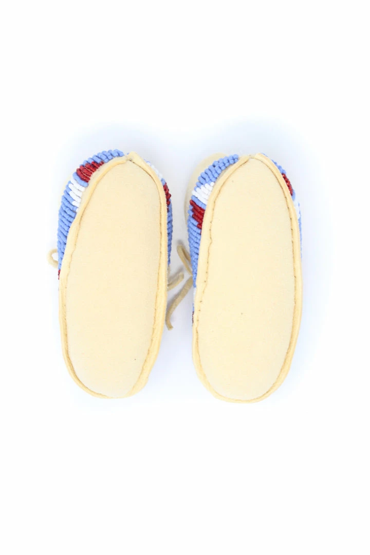 Tanned hide baby moccasins adorned with size 11/0 seedย beads.ย