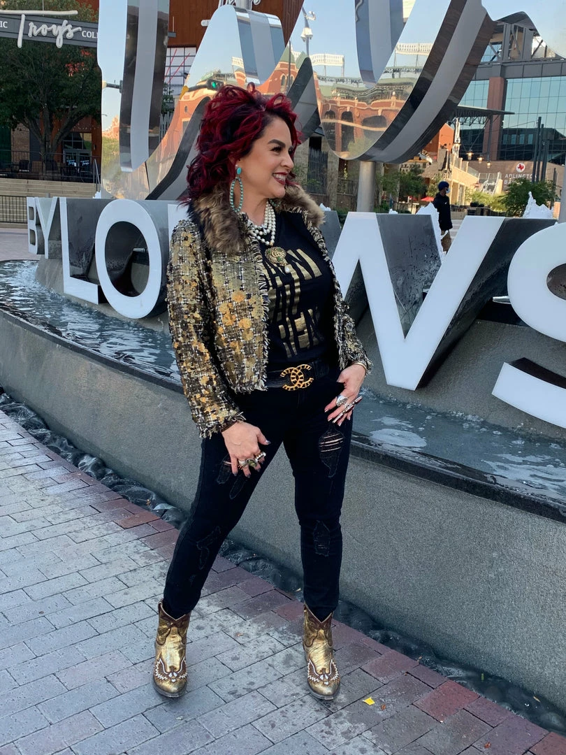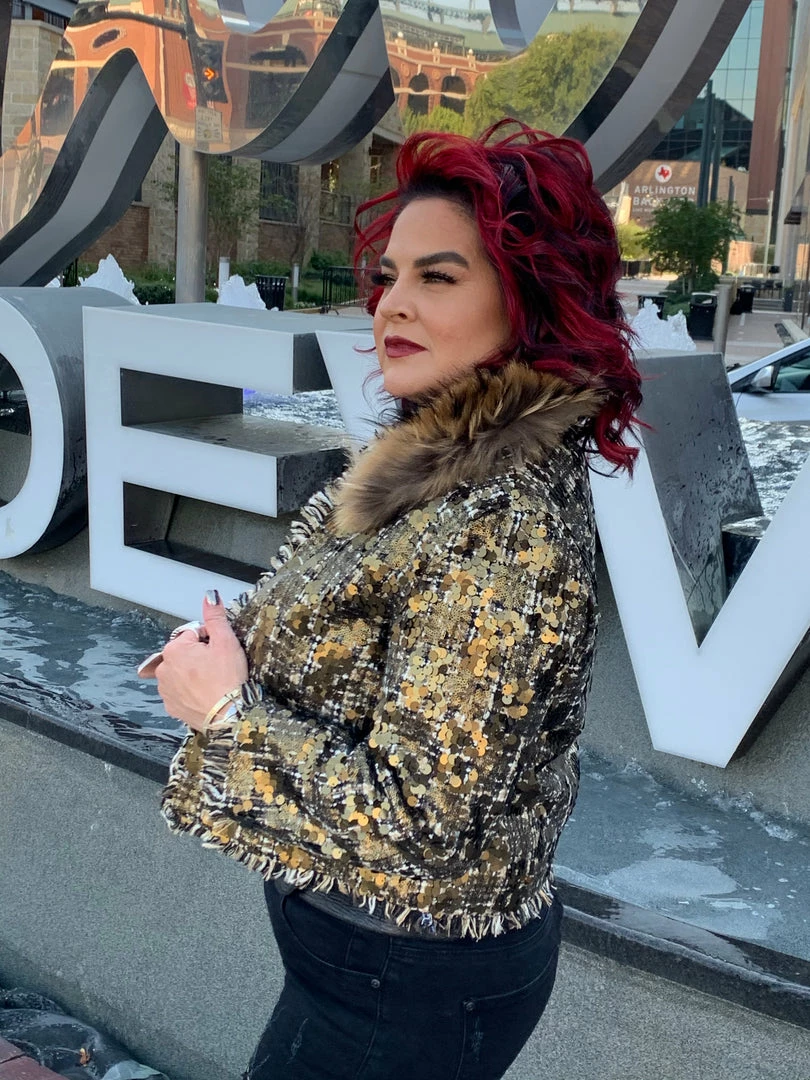 Sometimes all it takes is to put everything together like with this cropped, tweedย & sequin jacket with a gold fur collar, and you have a winner!