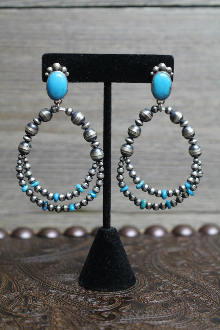 Crafted out of Turquoise and sterling silver these hoop earrings will complete any outfit
