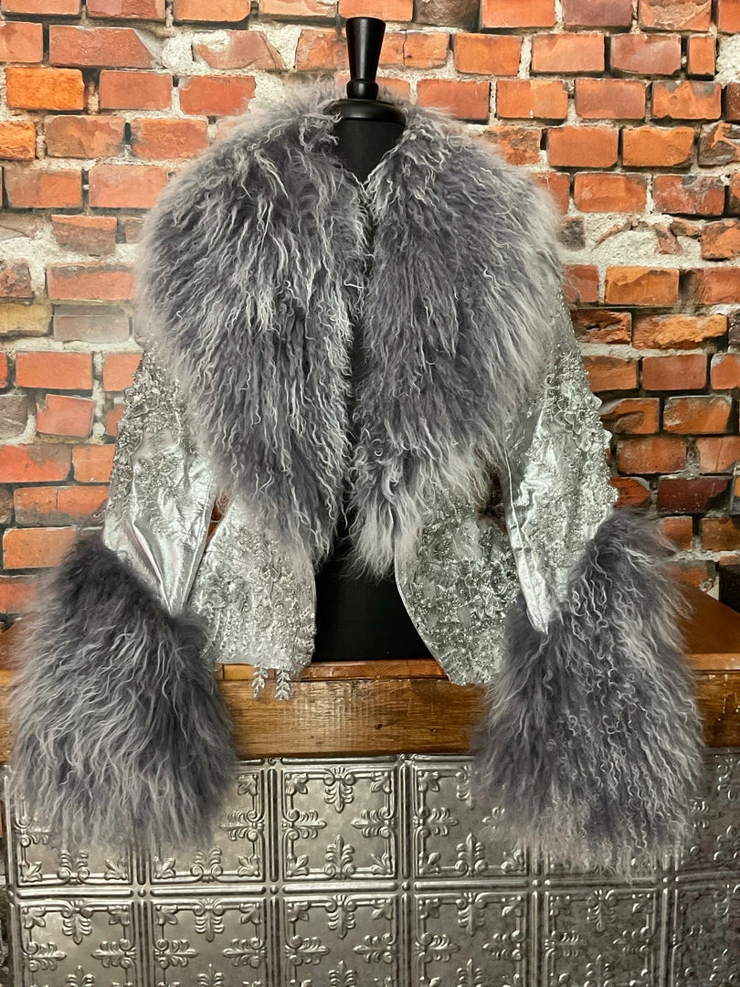 - Wrinkle-look faux leather with Lace & Mongolian Tibetan Fur Collar