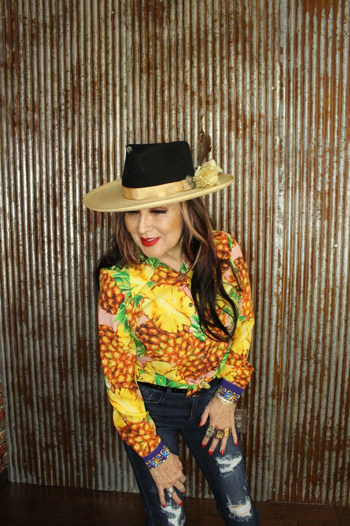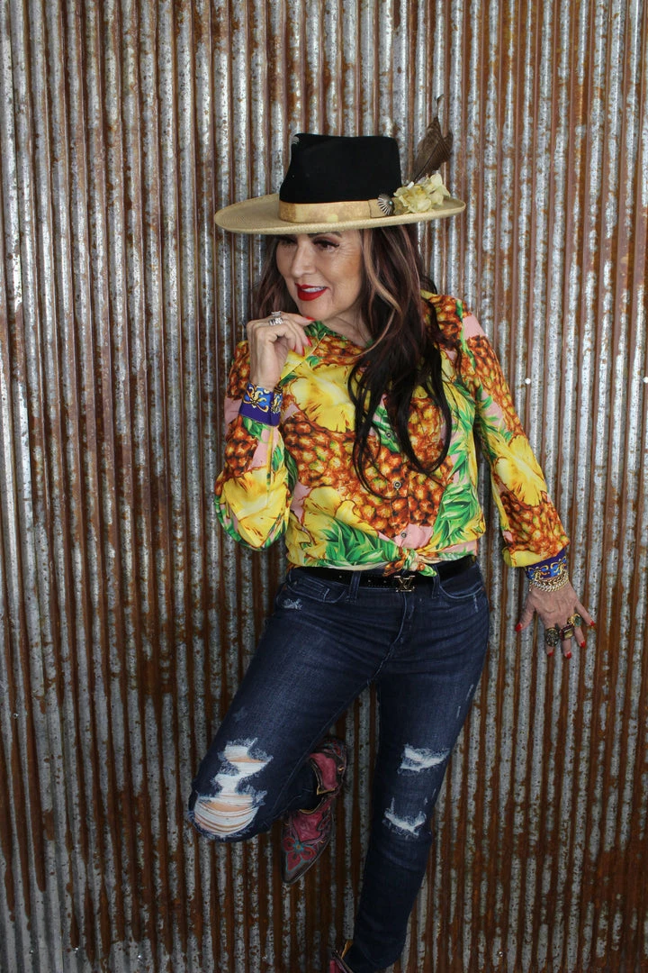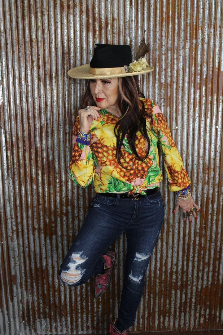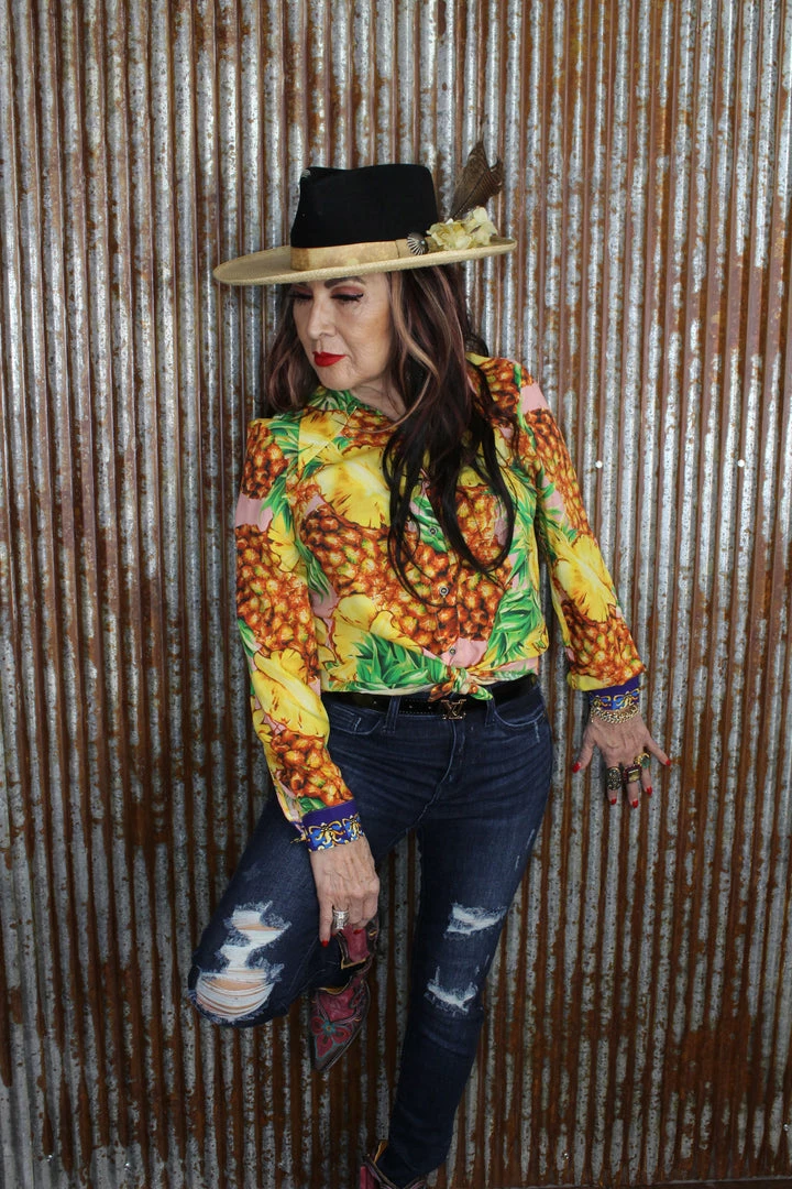 Sometimes you just need a reason to smile and this shirt will definitely have you smiling! Fun pattern on the cuff!